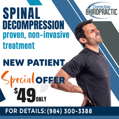 Welcome to Corrective Chiropractic, led by Mark Jensen DC, FPSC(C), DAAMLP , serving Raleigh, NC, and surrounding areas. Our practice is focused on Spinal Decompression Therapy, a non-surgical treatment designed to support spinal recovery and function, providing relief for back pain or neck pain, degenerative disc disease, spinal injuries, and other spinal conditions. We also help with herniated disc, plantar fasciitis, and shoulder pain, creating personalized treatment plans for each patient.
